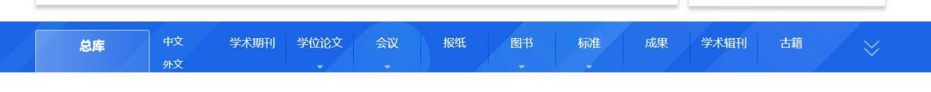总库检索后,点击各资源类型名称,下方的检索结果区即为该资源类型文献。